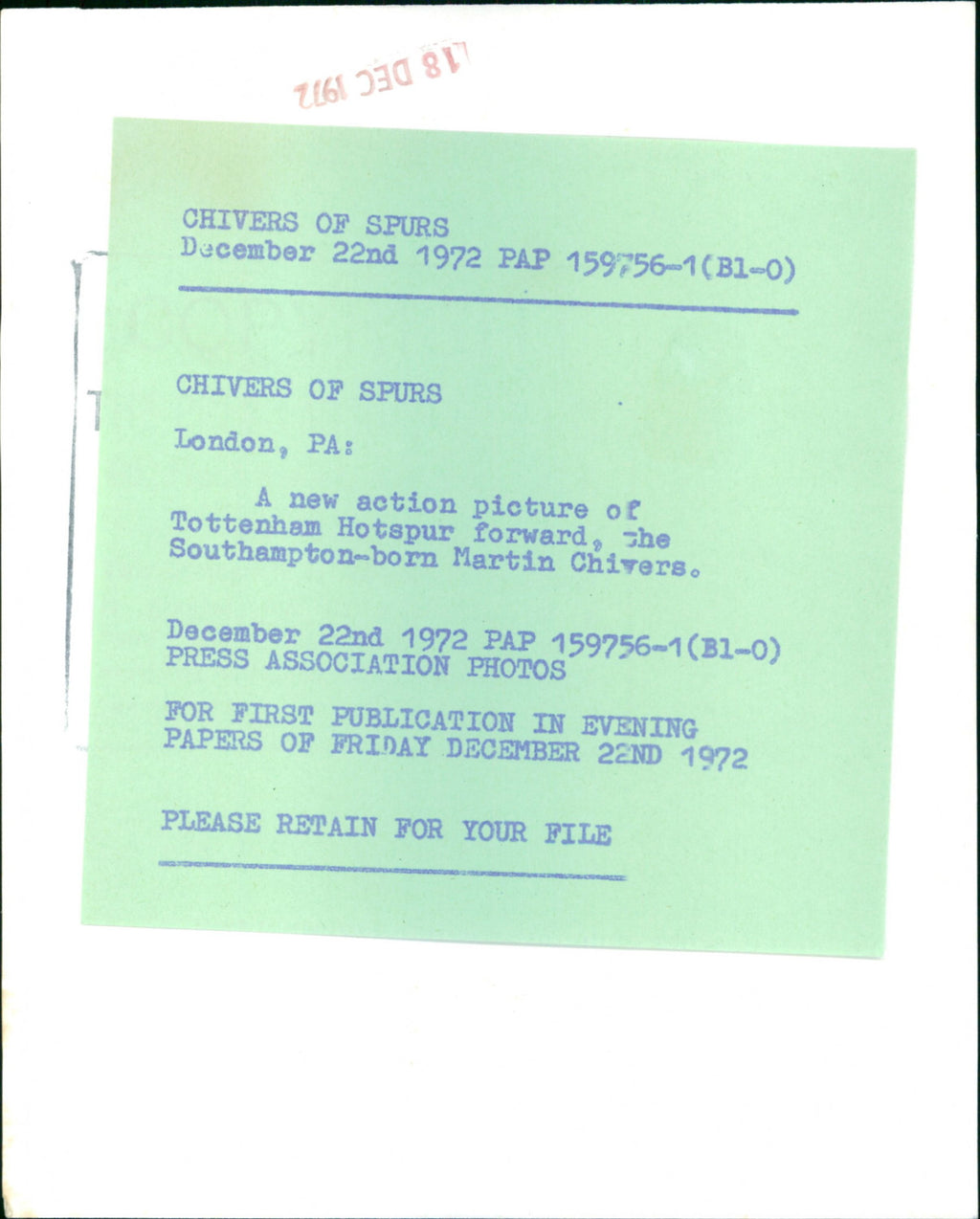 All our press photos are LIMITED ARCHIVE ORIGINALS - they are the actual prints that were used by the newspapers, they are not reprints or digital prints produced by us. All the prints are at least 30 years old and up to 100 years old.