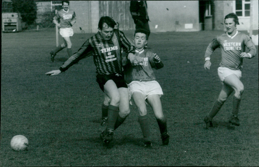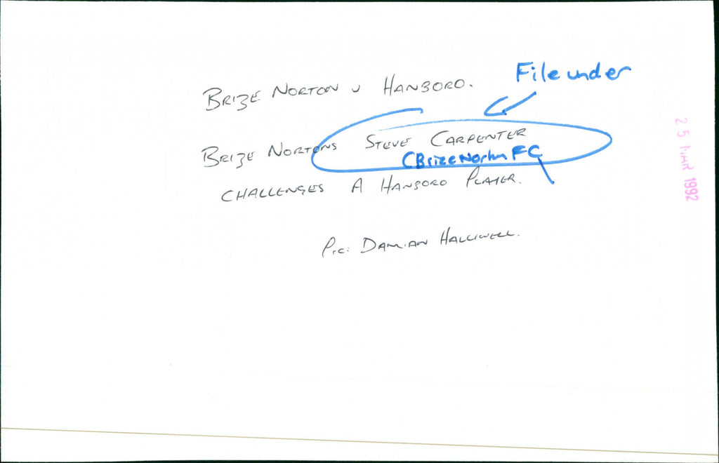 Brize Nortons Steve Carpenter challenges a Hanboro player. Brize Nortons Steve Carpenter challenges a Hanboro player.