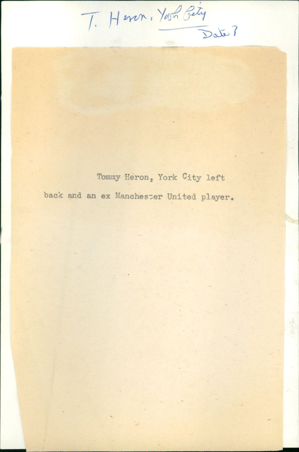 Tommy Heron, York City left and back and an ex-Manchester United player. Tommy Heron, York City left and back and an ex-Manchester United player.