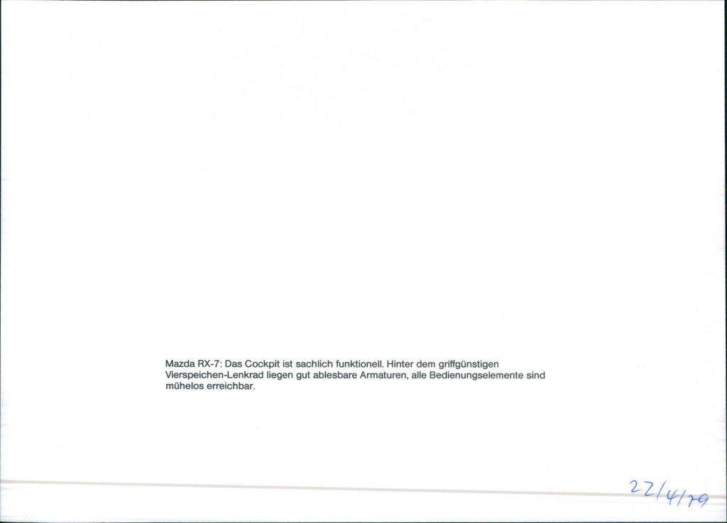 Mazda RX-7: The cockpit is functional. The easy-to-read fittings are located behind the easy-to-handle four-spoke steering wheel, and all controls are easily accessible.