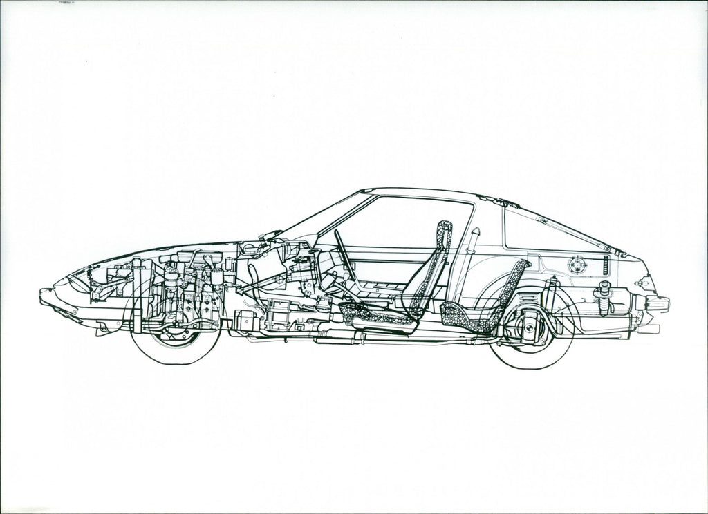 Mazda RX-7: The sectional drawing shows an engine placed behind the front axle and a large interior for sports cars.