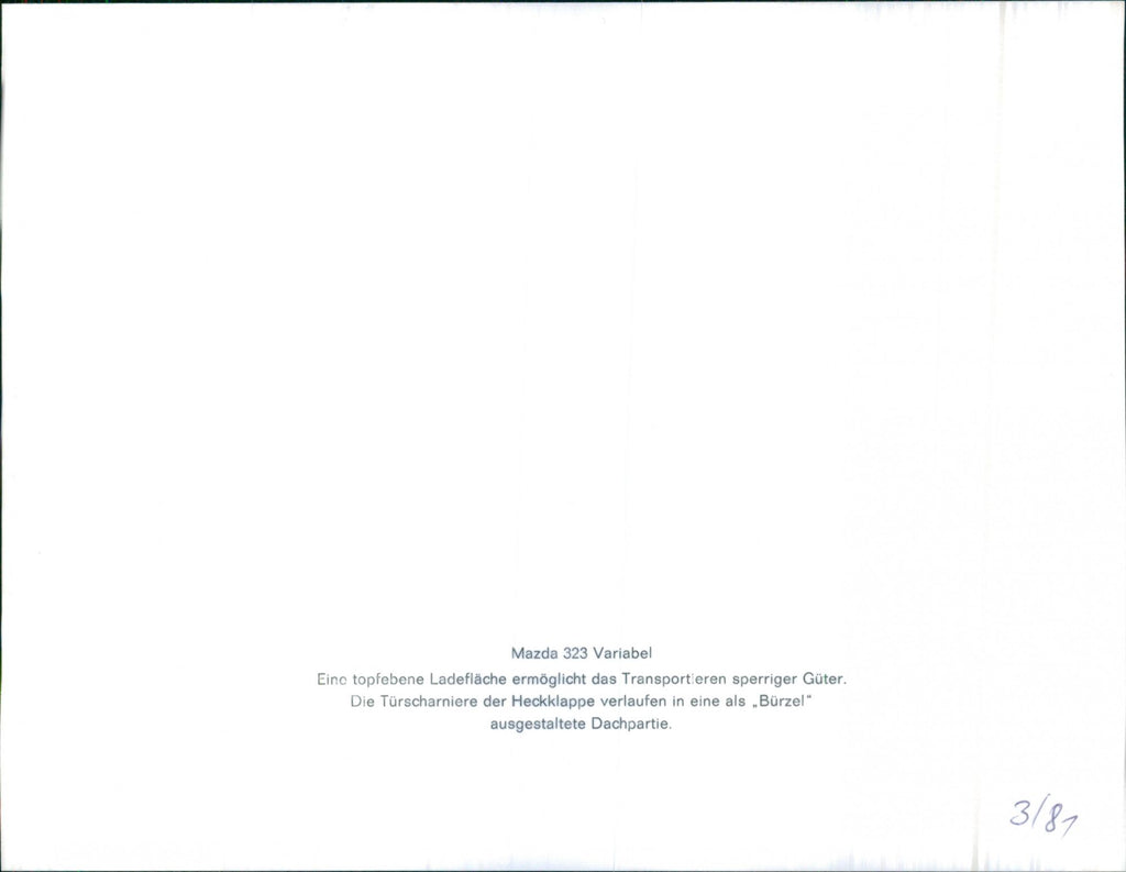 Mazda 323 Variable. A flat loading area enables the transport of bulky goods. The door hinges of the tailgate run into a roof section designed as a "rump".