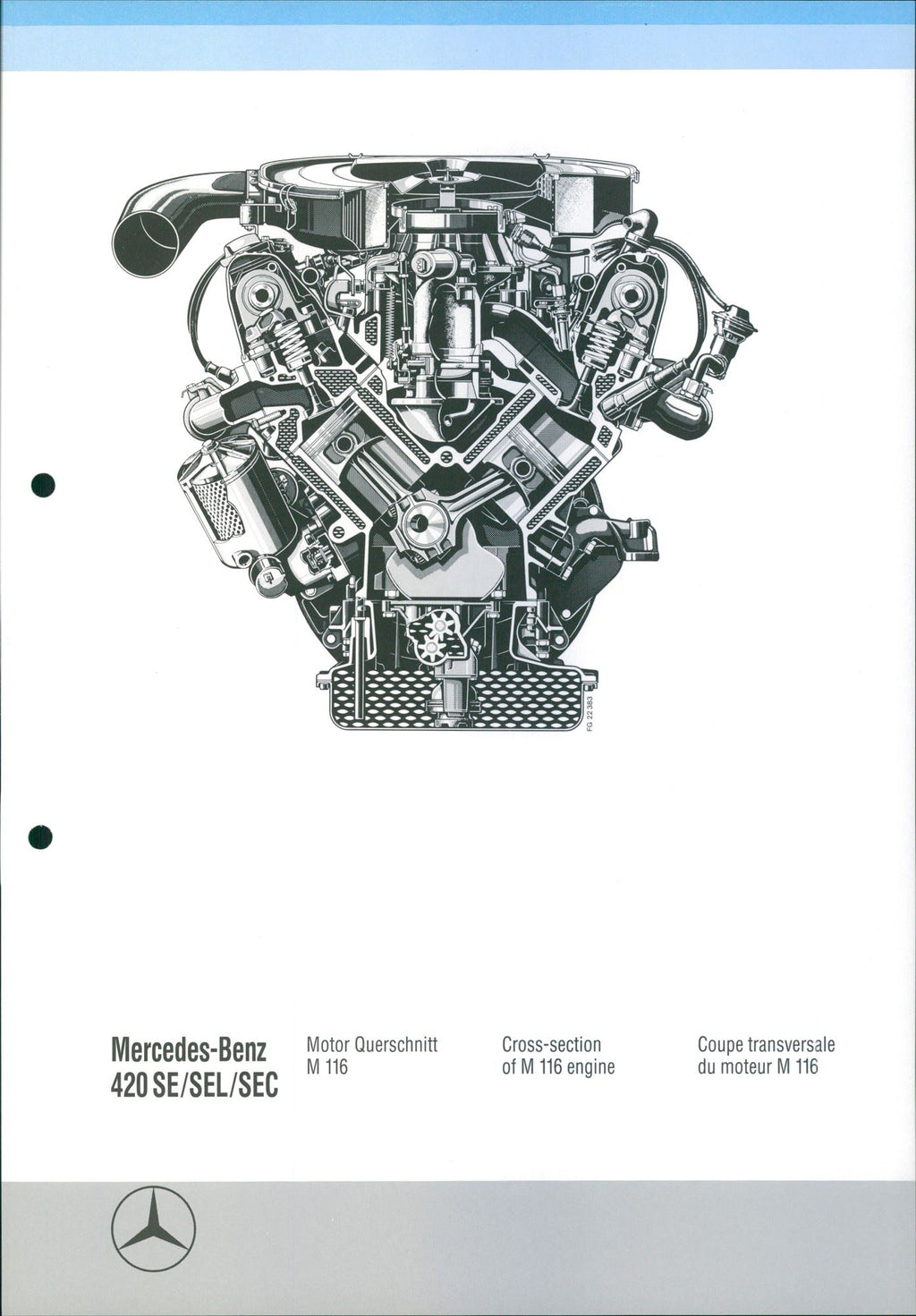 1985 Mercedes-Benz 420 SE/SEL/SEC, cross section of M 116 engine.