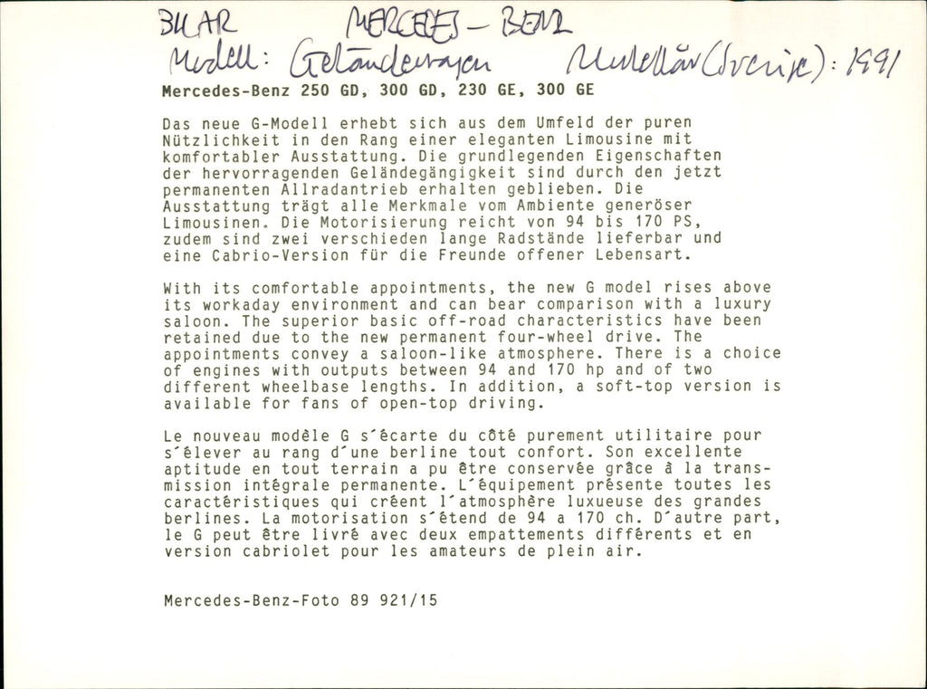 Mercedes-Benz 250 GD, 300 GD, 230 GE, 300 GE - Vintage Photograph