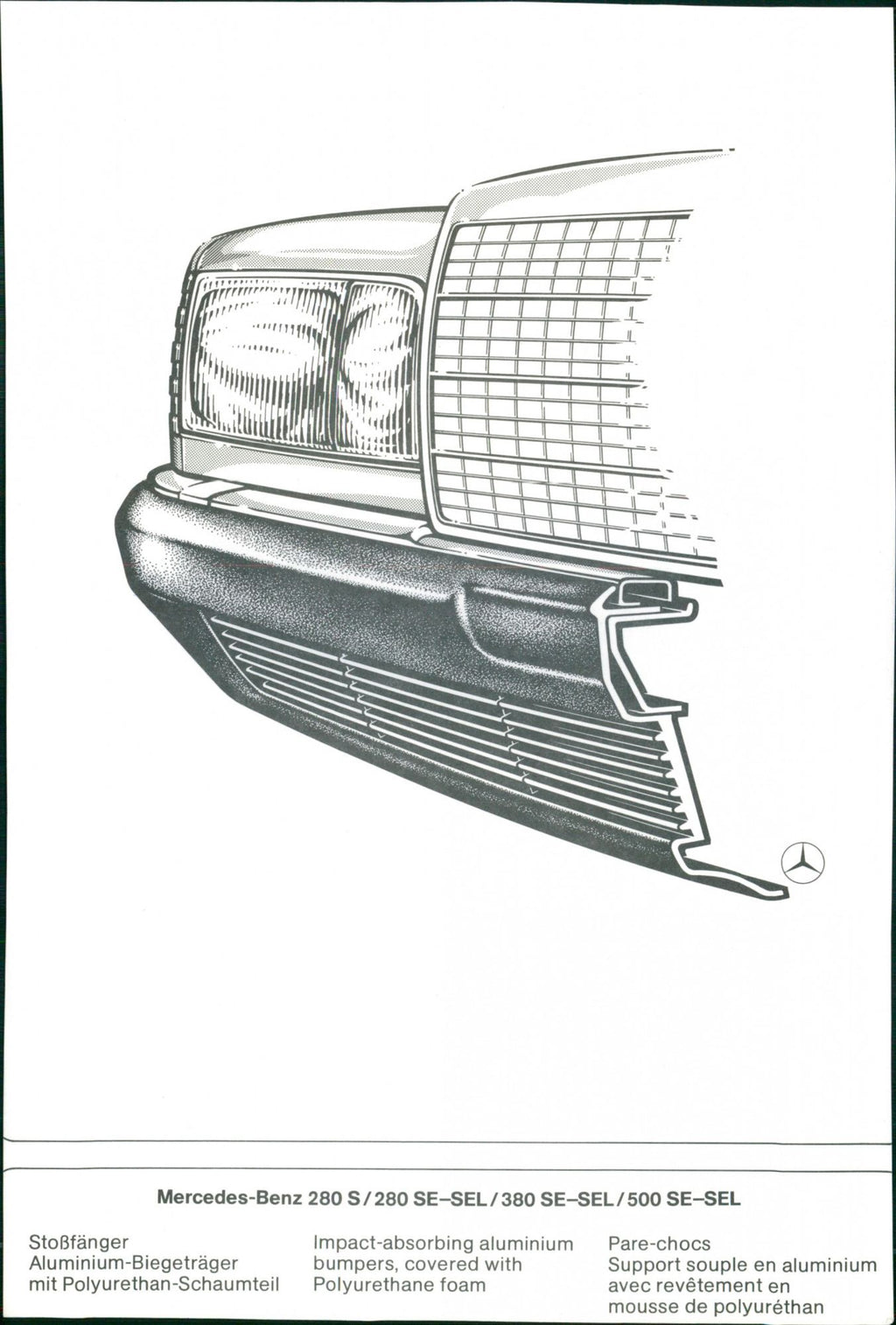 Mercedes-Benz 280 S and 280,380,500 SE-SEL impact-absorbing aluminium bumpers,covered with polyurethane foam.