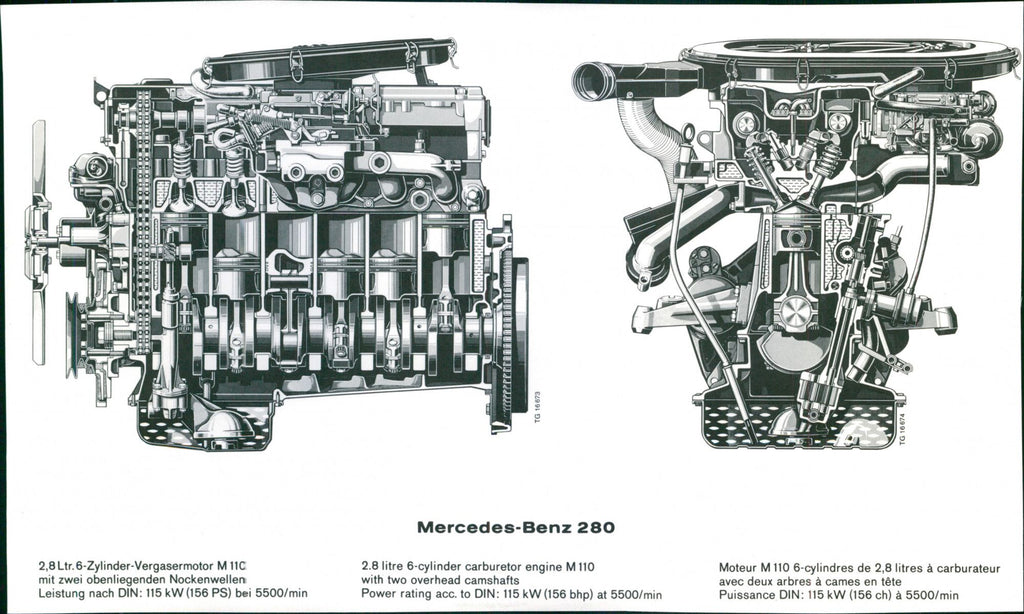 2.8 Litre 6-cylinder carburetor engine M110 with two overhead camshafts Power rating acc. to DIN: 115 kW (156 bhp) at 5500/min.