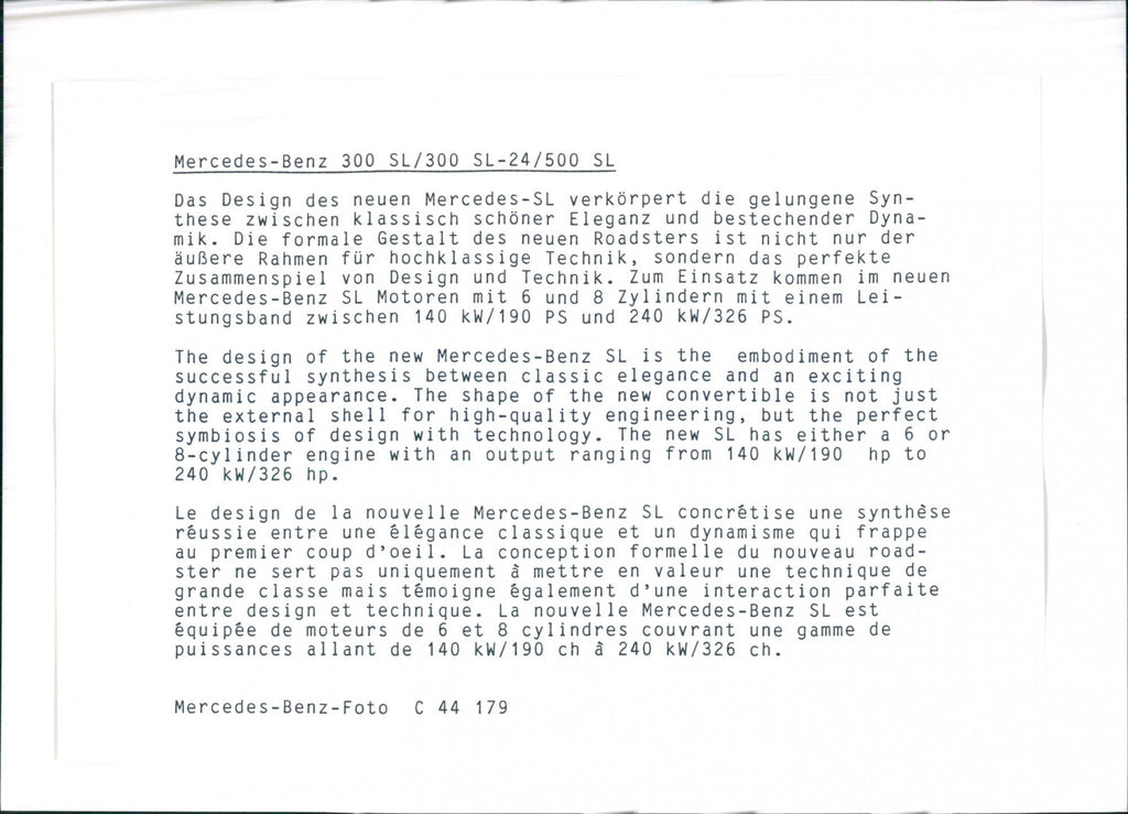 Mercedes-Benz 300 SL/300 SL-24/ 500 SL - Vintage Photograph