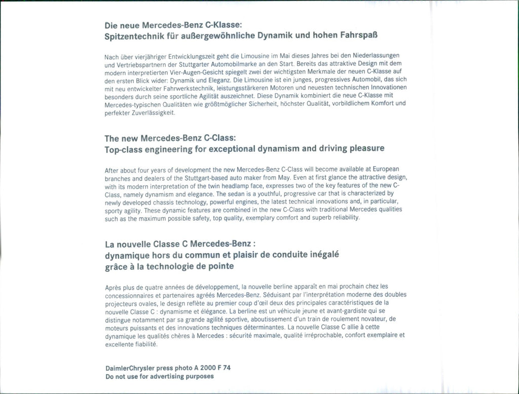 The new Mercedes-Benz C-Class: Top-class engineering for exceptional dynamism and driving pleasure. After about four years of development the new Mercedes-Benz C-Class will become available at European branches and dealers of the Stuttgart-based auto maker from May.