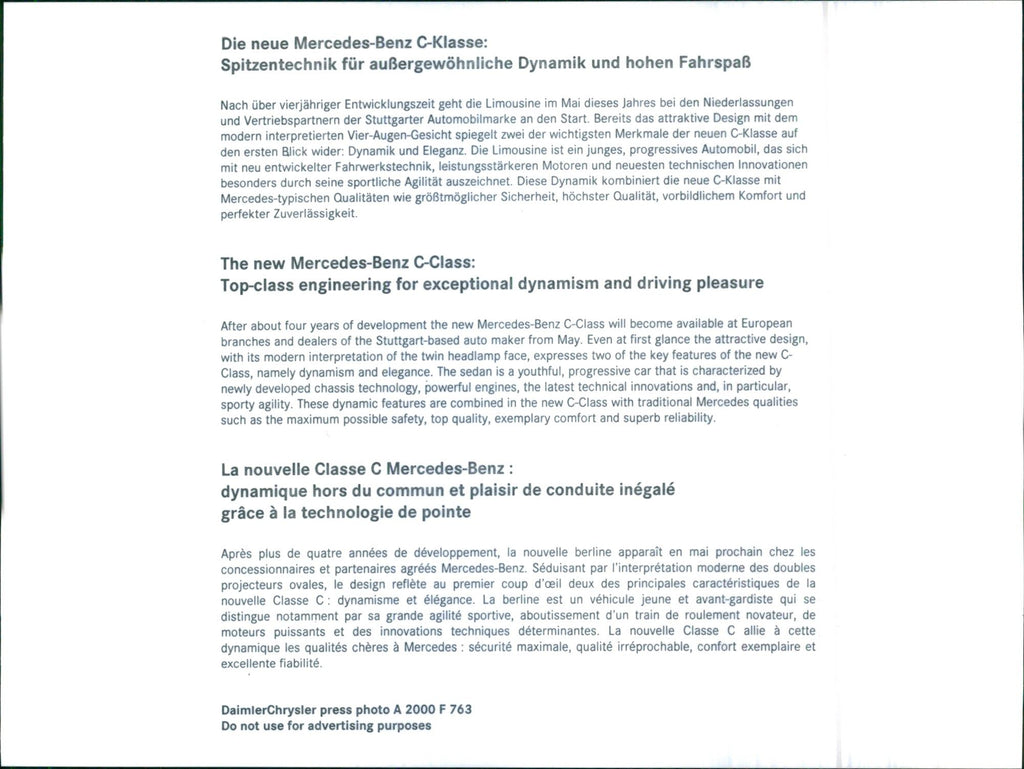The new Mercedes-Benz C-Class: Top-class engineering for exceptional dynamism and driving pleasure. After about four years of development the new Mercedes-Benz C-Class will become available at European branches and dealers of the Stuttgart-based auto maker from May.