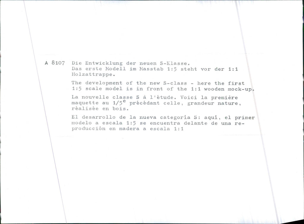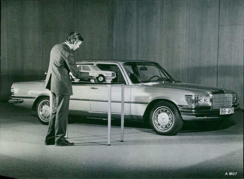 Mercedes Benz, the development of the new S-class 1:5 scale model is in front of the 1:1 wooden mock-up.