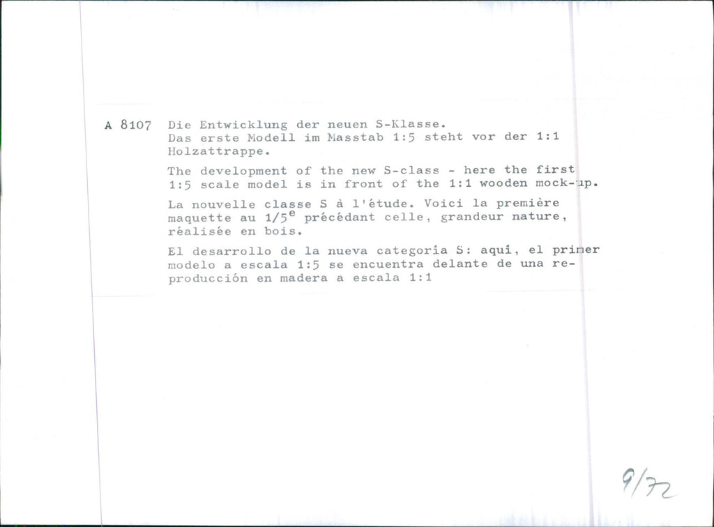 The development of the new S-class 1:5 scale model is in front of the 1:1 wooden mock-up.