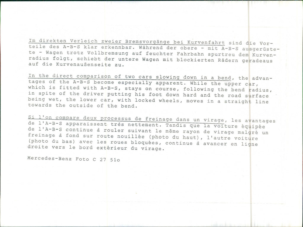 In the direct comparison of two cars slowing down in a bend, the advantages of the ABS become especially apprent.