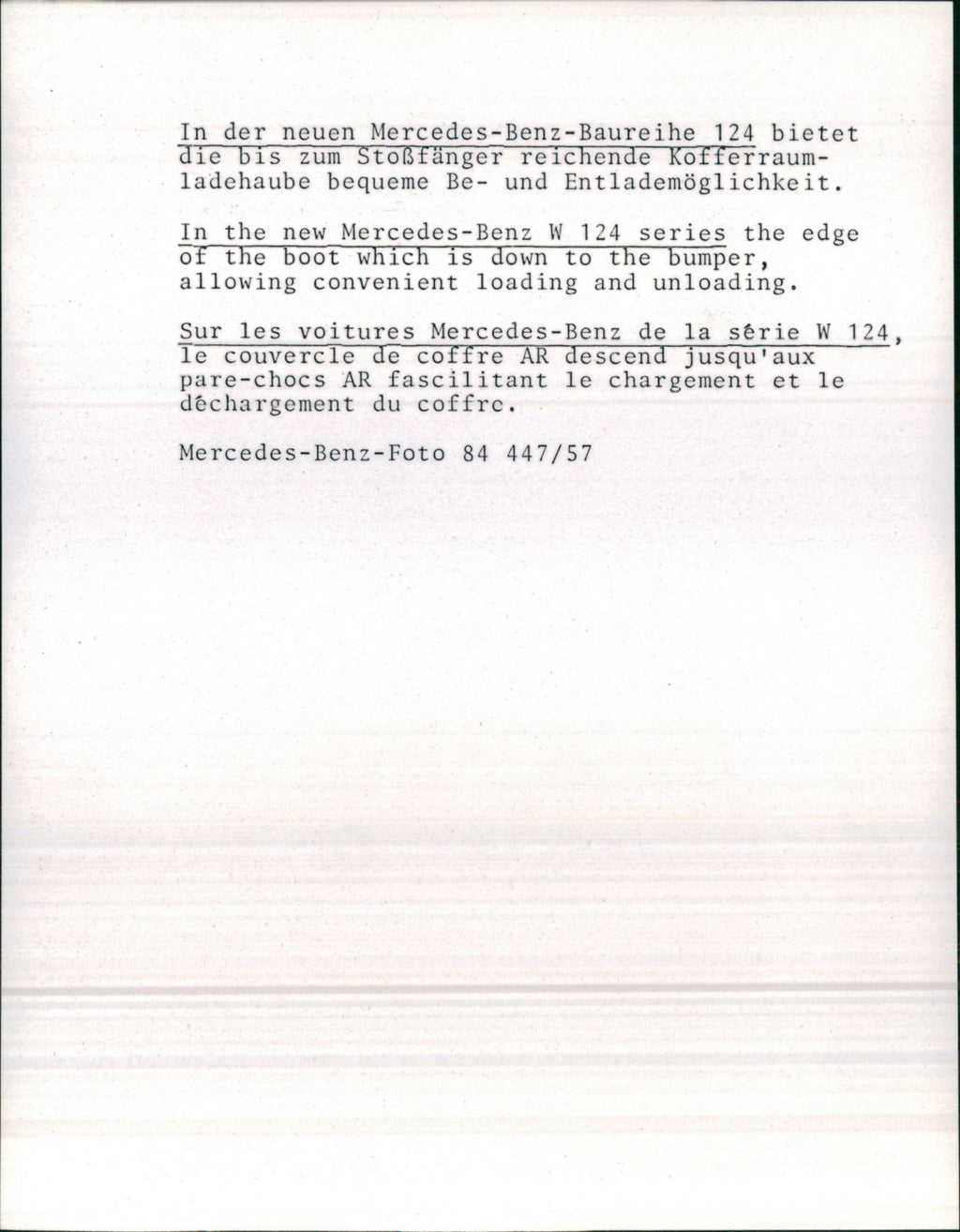 In the new Mercedes-Benz W 124 series the edge of the boot which is down to the bumper, allowing convenient loading and unloading.