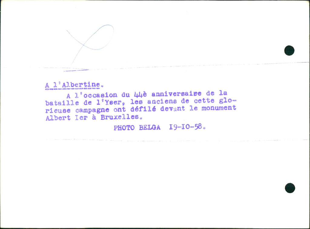 On the occasion of the 44th anniversary of the battle of the Yser, the elders of this glorious campaign marched in front of the Albert the first monument in Brussels