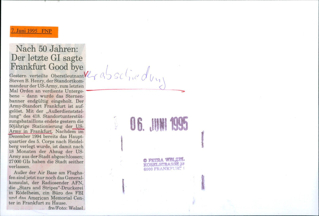 End of the 50-year stationing of the US Army in Frankfurt - Vintage Photograph