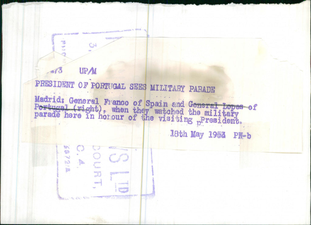 General Francisco Franco of Spain when he watched the military parade in honour of General Lopes of Portugal, the visiting President.