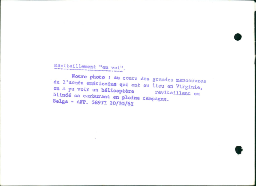 During the great maneuvers of the American army in Virginia, we could see a helicopter fueling mid-flight on the countryside
