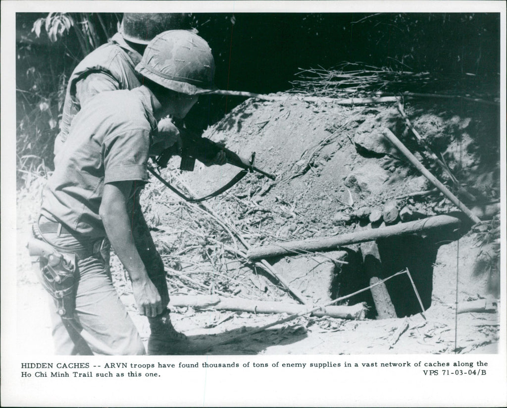 Laos War: ARVN Troops have found thousands of tons of enemy supplies in a vast network of caches along the Ho Chi Minh Trail. Laos War: ARVN Troops have found thousands of tons of enemy supplies in a vast network of caches along the Ho Chi Minh Trail.