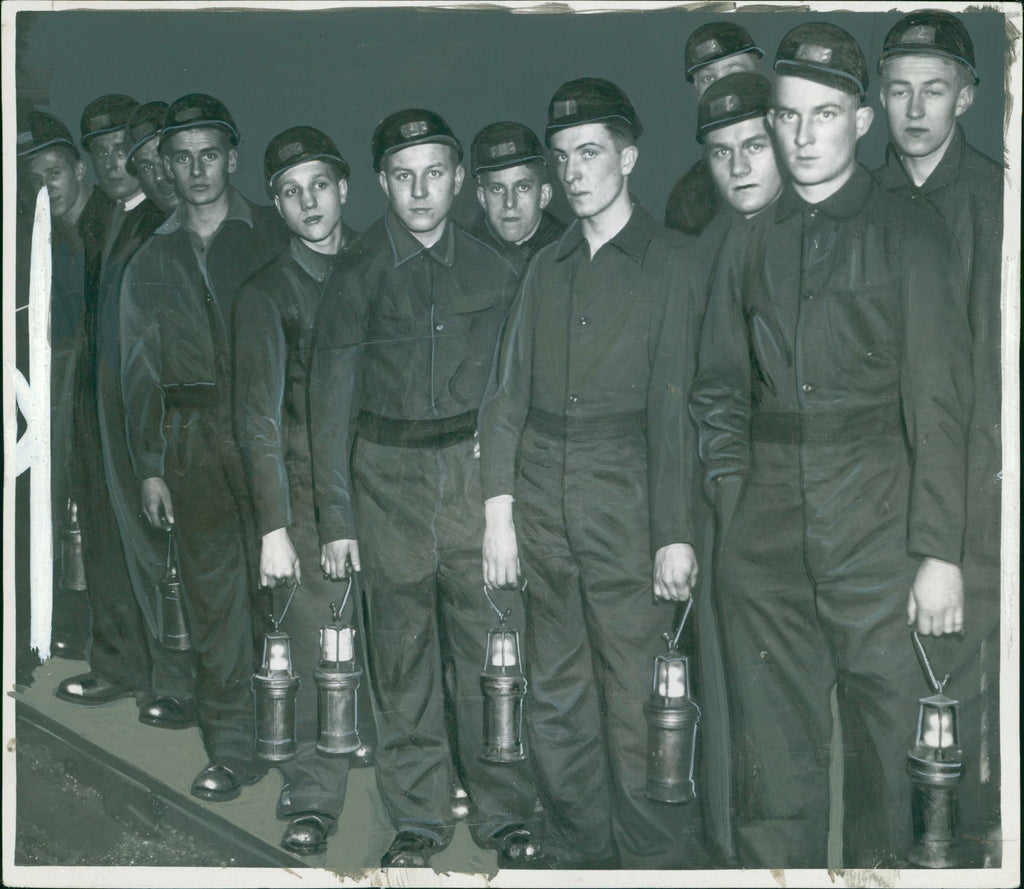 Miners awaiting their turn to go home. - Vintage Photograph