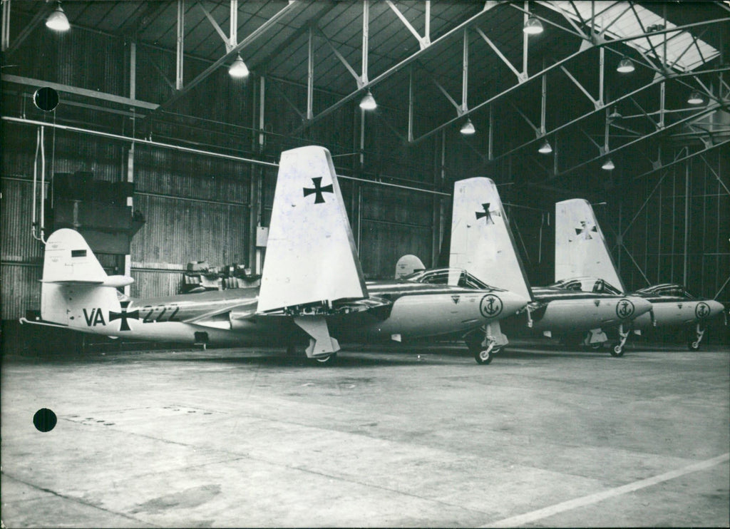 waiting in their hangar at Bitteswell, the first Sea Hawk fighters built in Great Britain for the German Air Force