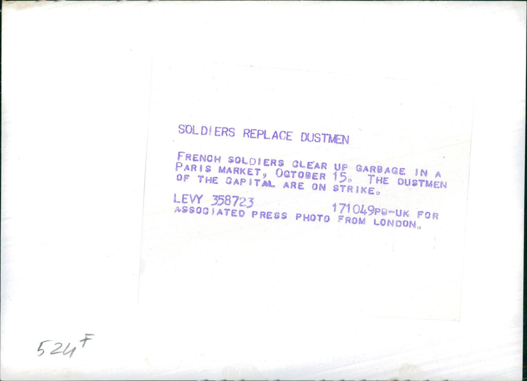 French Soldiers clear up garbage in Paris market. The dustmen of the capital are on stike.