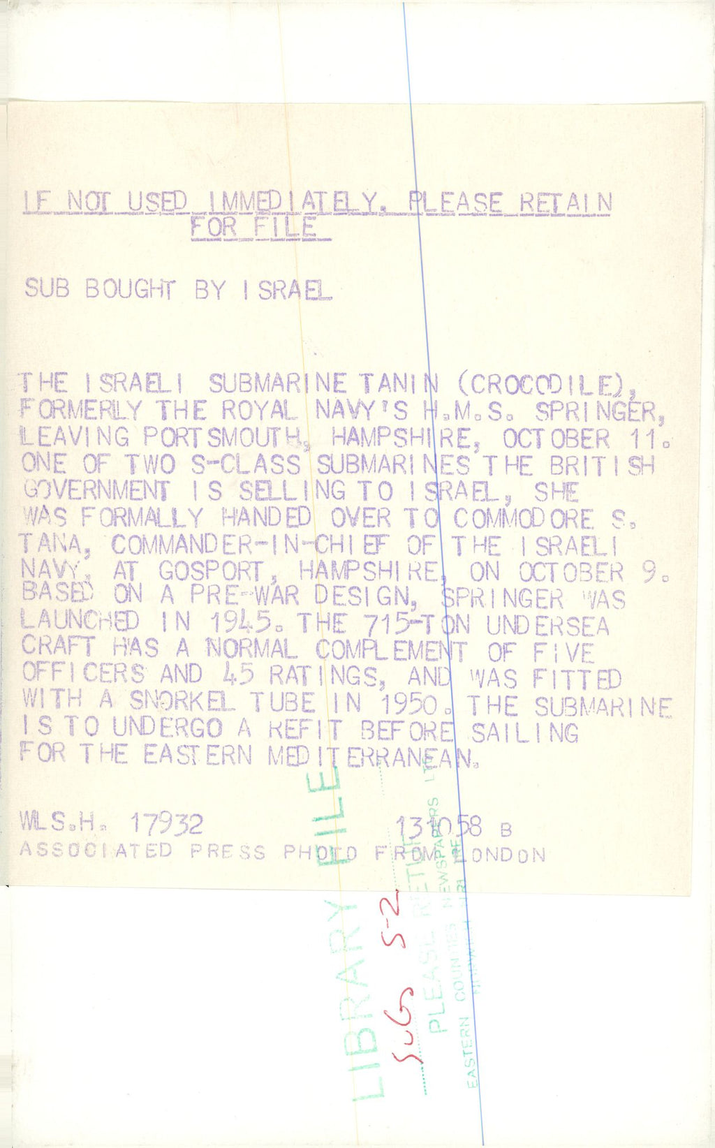 The Israeli Submarine Tanin, Crocodile - Vintage Photograph