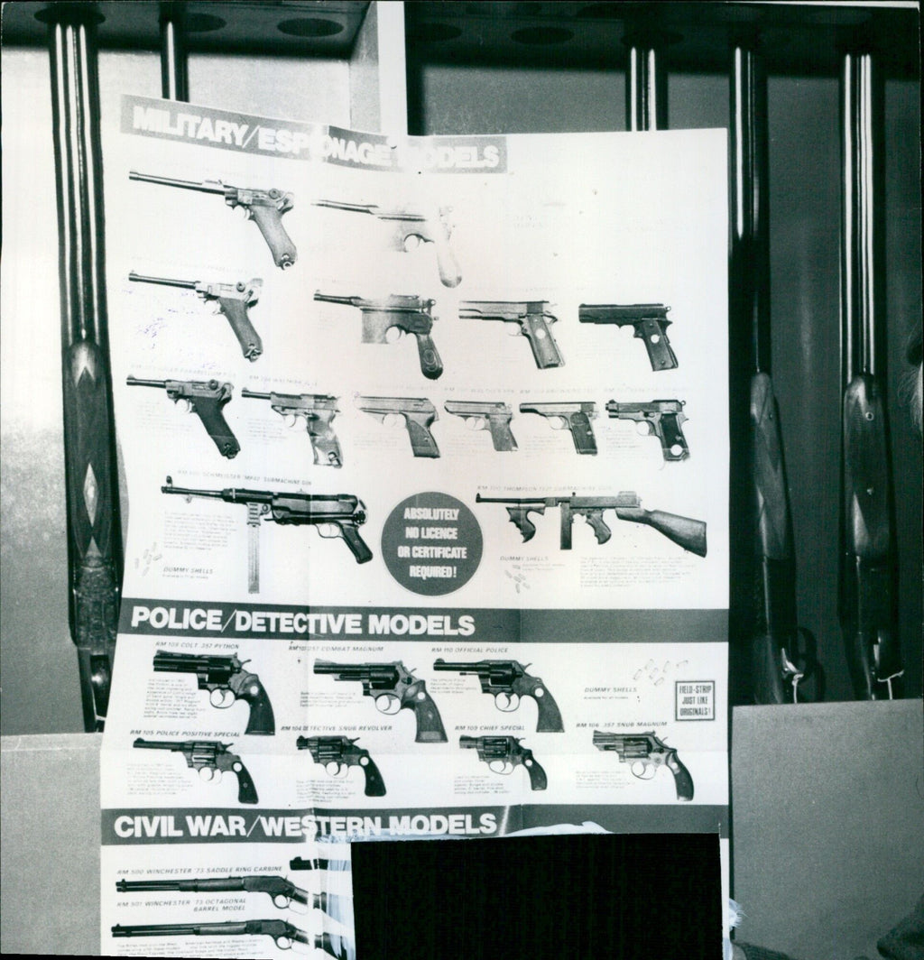 A display of various firearms models and dummy shells. - Vintage Photograph