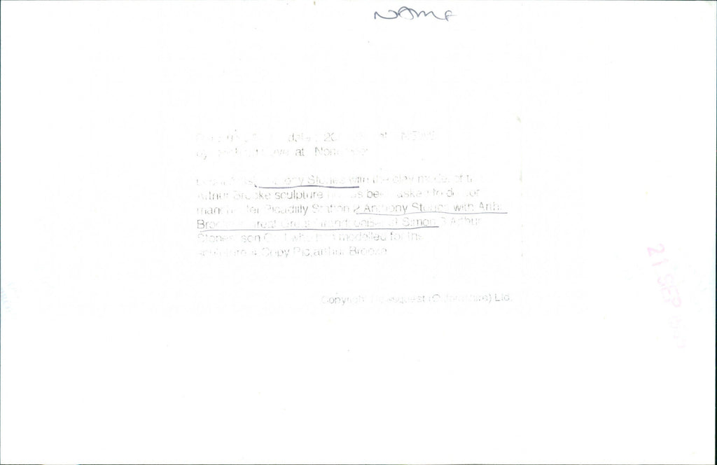 Anthony Stones and his son Anh Bron Stones won the clay modelling competition held at Piccadilly Station in London. The pair created a sculpture of the Arthur Brooke copyright lawsquest to forthre) Ltd. Anthony Stones and his son Anh Bron Stones won the clay modelling competition held at Piccadilly Station in London. The pair created a sculpture of the Arthur Brooke copyright lawsquest to forthre) Ltd.