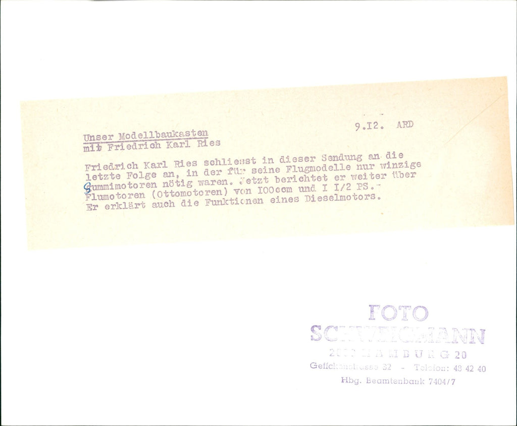 BUILDING TASTED OUR MODEL KIT FRIEDRICH KARL RIES PUS HIS FLIGHT - Vintage Photograph