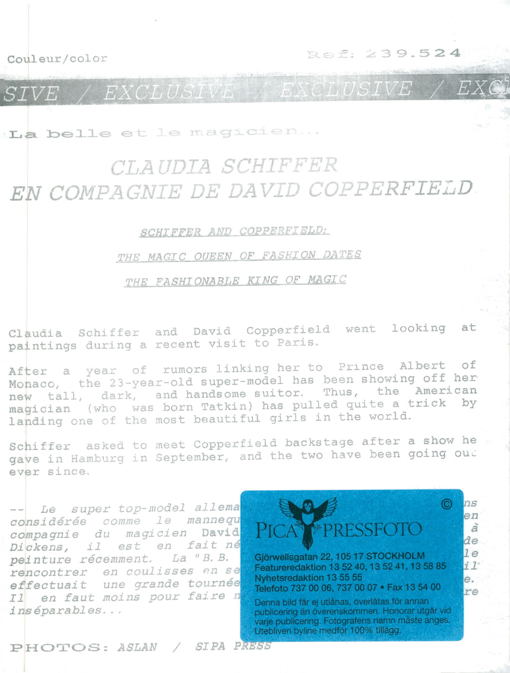 David Copperfield and Claudia Schiffer are looking at paintings in Paris - Vintage Photograph
