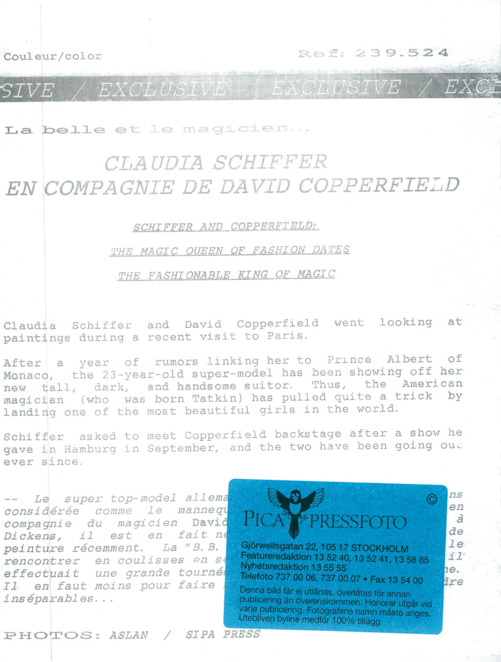 David Copperfield and Claudia Schiffer are looking at paintings in Paris - Vintage Photograph