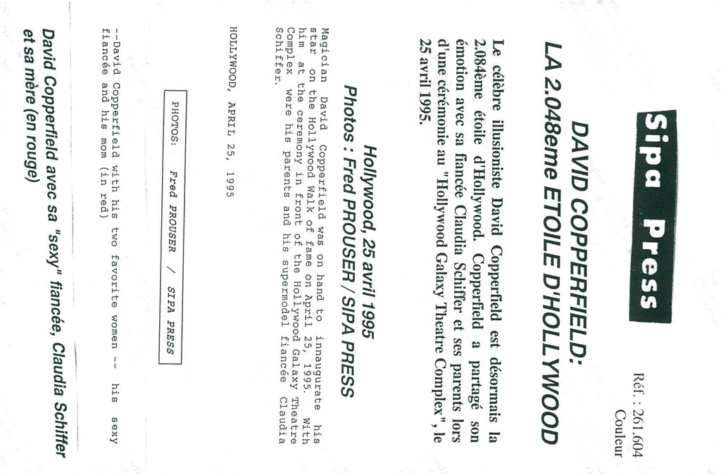 David Copperfield at the opening of his "Hollywood Walk of Fame" star. Here with his fiancée Claudia Schiffer - Vintage Photograph