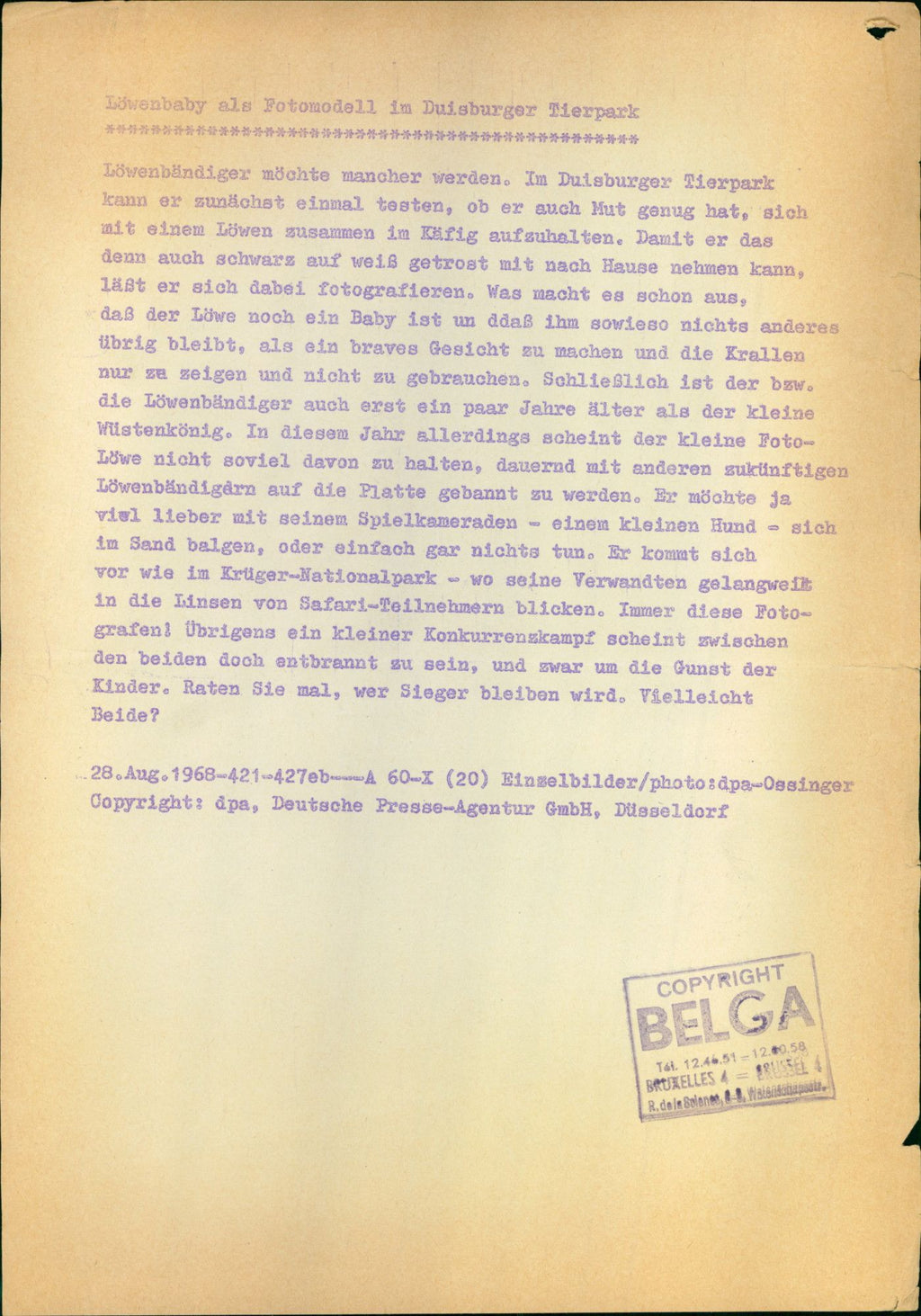 Lowenbaby als Fotomodell in Duisburger merpark ******************* - ** - * - * - Vintage Photograph