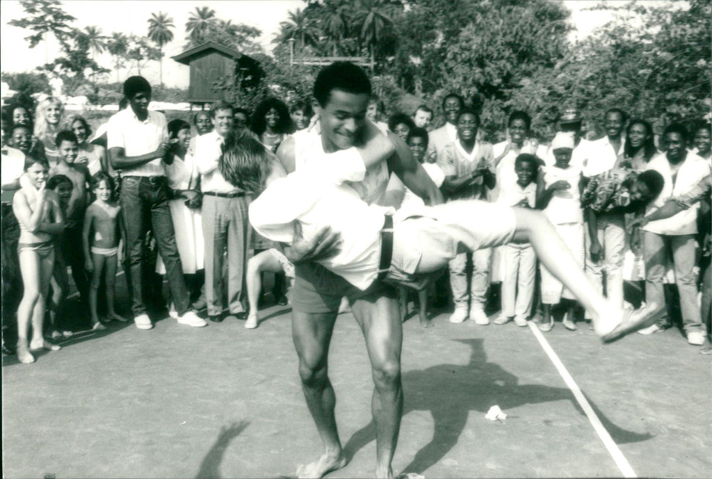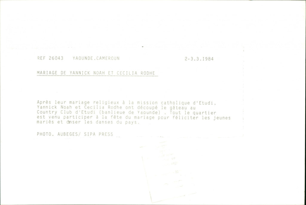 After their religious wedding at the Etudi Catholic Mission, Yannick Noah and Cecilia Rodhe carved the cake at the Etudi Country Club (suburb of Yaounde).
