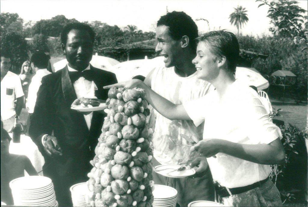 After their religious wedding at the Etudi Catholic Mission, Yannick Noah and Cecilia Rodhe carved the cake at the Etudi Country Club (suburb of Yaounde). The whole neighborhood came to participate in the wedding party to congratulate the newlyweds and dance dances of the country.