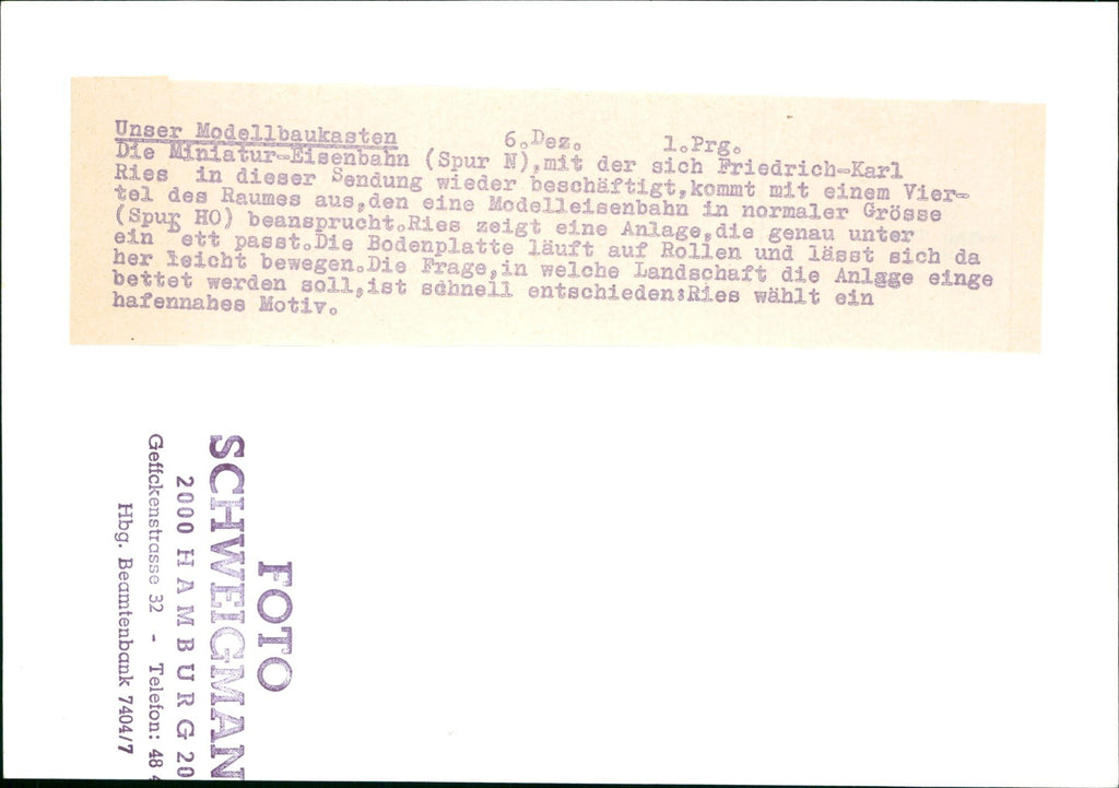 MODEL BUILDING LOAD FRIEDRICH KARL RIES MINIATURE DISENBAHN COMES OUT - Vintage Photograph