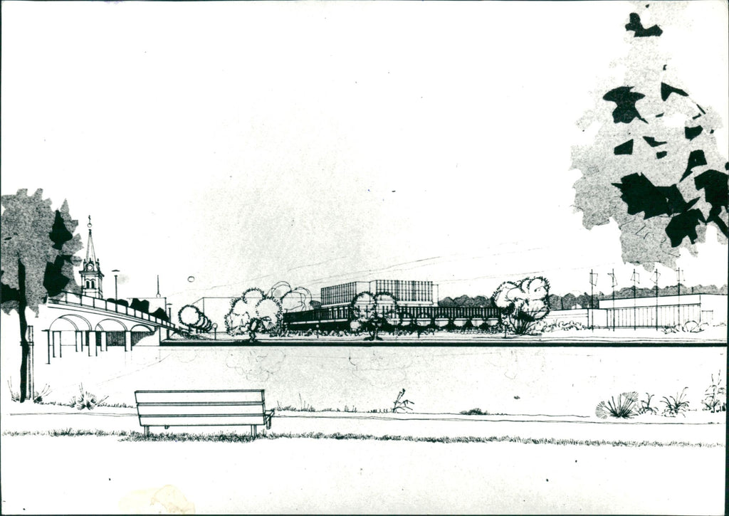 Model of the city library in Karlstad. - Vintage Photograph