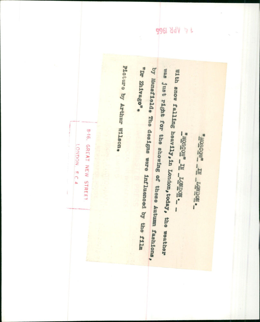 Models show off Autumn fashions influenced by "Dr Zhivago" in London. - Vintage Photograph