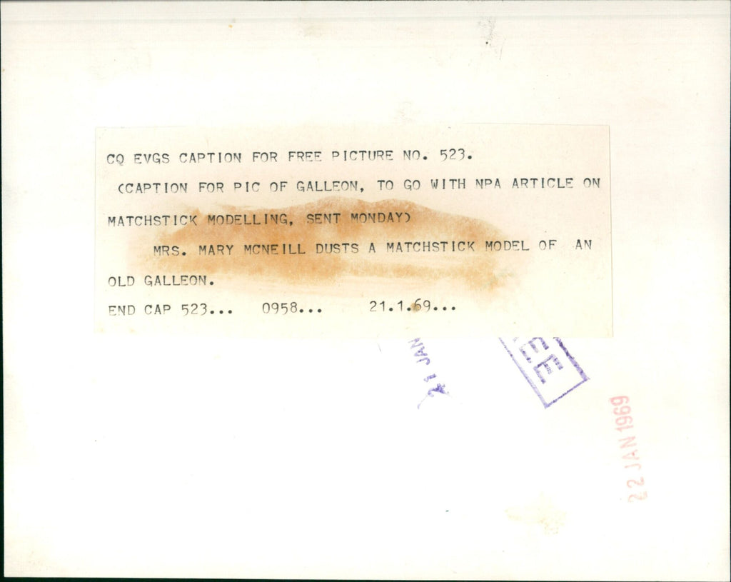 Mrs. Mary McNeill is seen in this photograph dusting a matchstick model of an old galleon. The model is used in matchstick modelling, a craft that involves creating intricate models out of matchsticks. Mrs. Mary McNeill is seen in this photograph dusting a matchstick model of an old galleon. The model is used in matchstick modelling, a craft that involves creating intricate models out of matchsticks.
