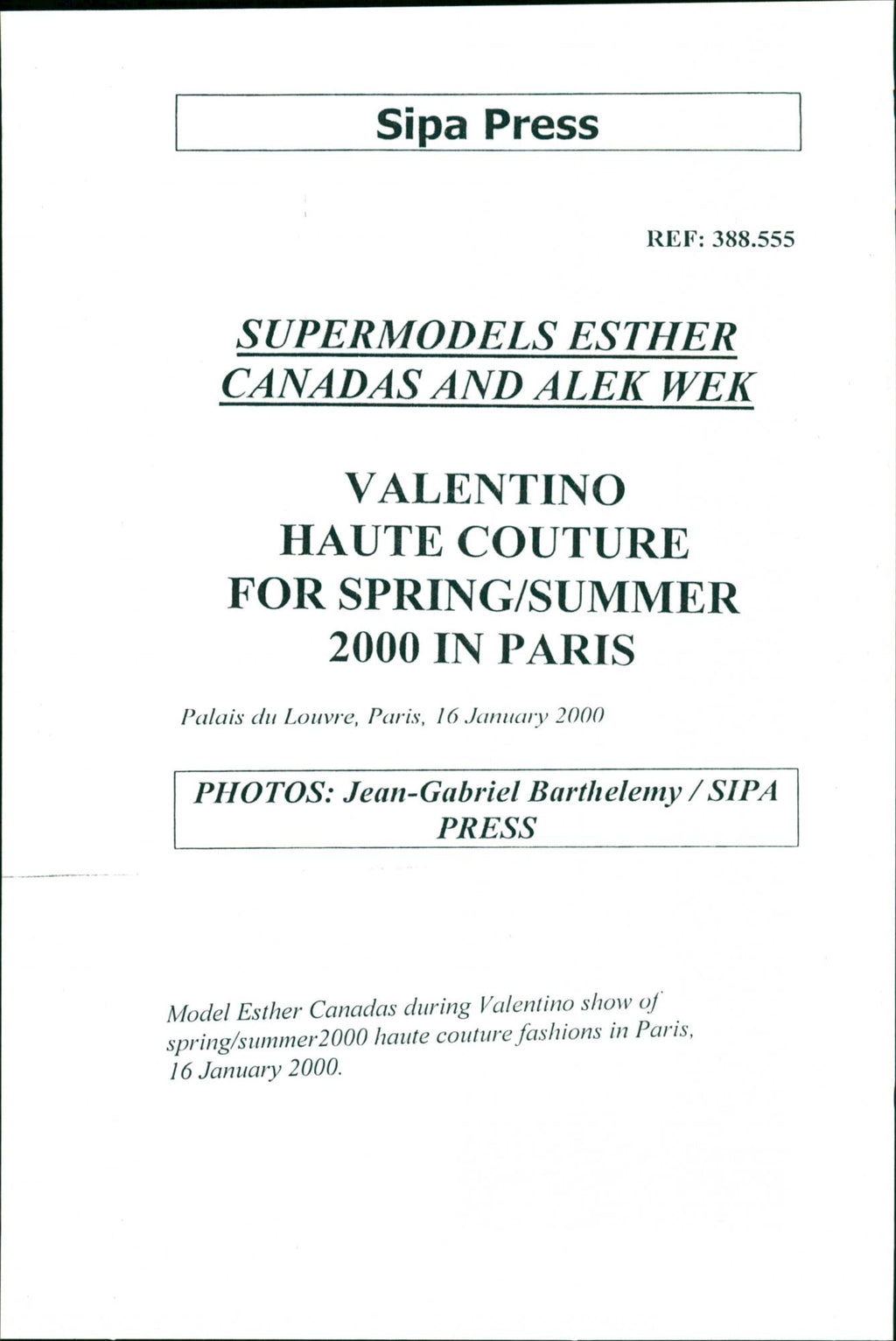 Model Esther Canadas during Valentino show of spring/summer2000 haute couture fashions in Paris.