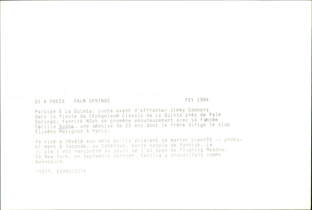 Swedish model Cécilia Rodhe and Tennis player Yannick Noah. - Vintage Photograph