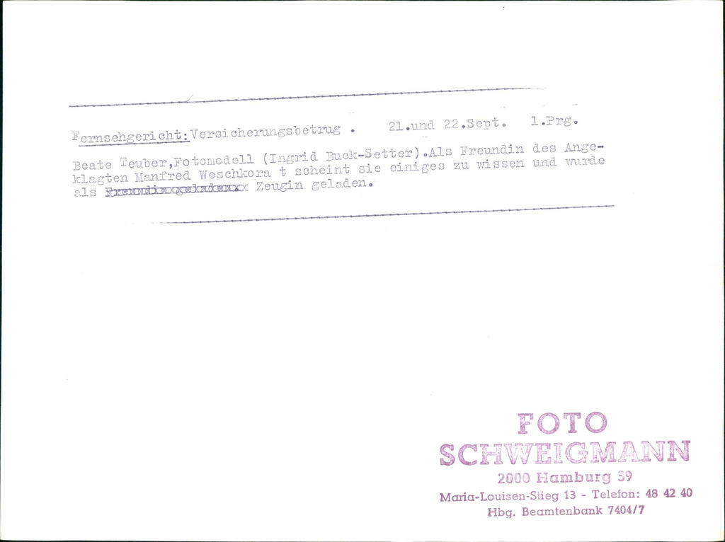 TELEVISION INSURANCE PLUG SEPT AND ATE TEUBER MODEL INGRID BUCK SETTE - Vintage Photograph