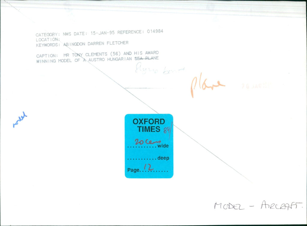 Tony Clements displays his award-winning model of a Austro-Hungarian sea plane. - Vintage Photograph