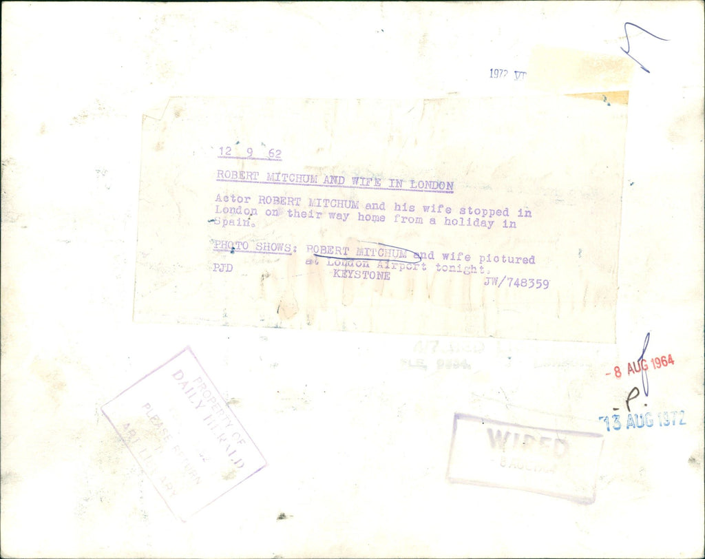 1964 - ROBERT MITCHUM AND WIFE IN LONDON FILMS MITCHOM 748359 - Vintage Photograph