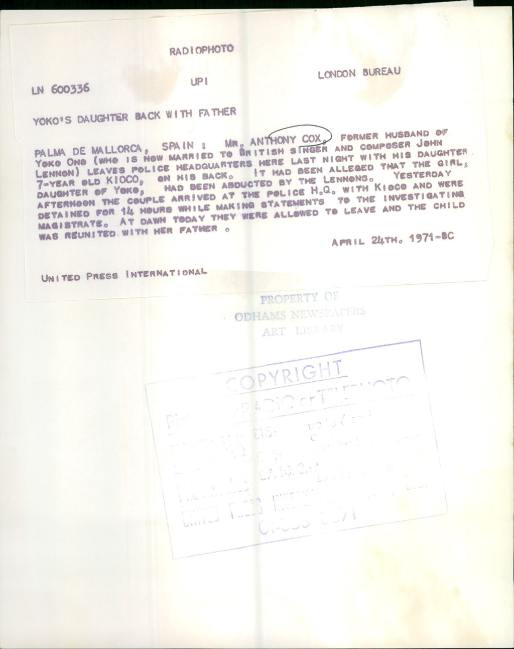 All our press photos are LIMITED ARCHIVE ORIGINALS - they are the actual prints that were used by the newspapers, they are not reprints or digital prints produced by us. All the prints are at least 30 years old and up to 100 years old.