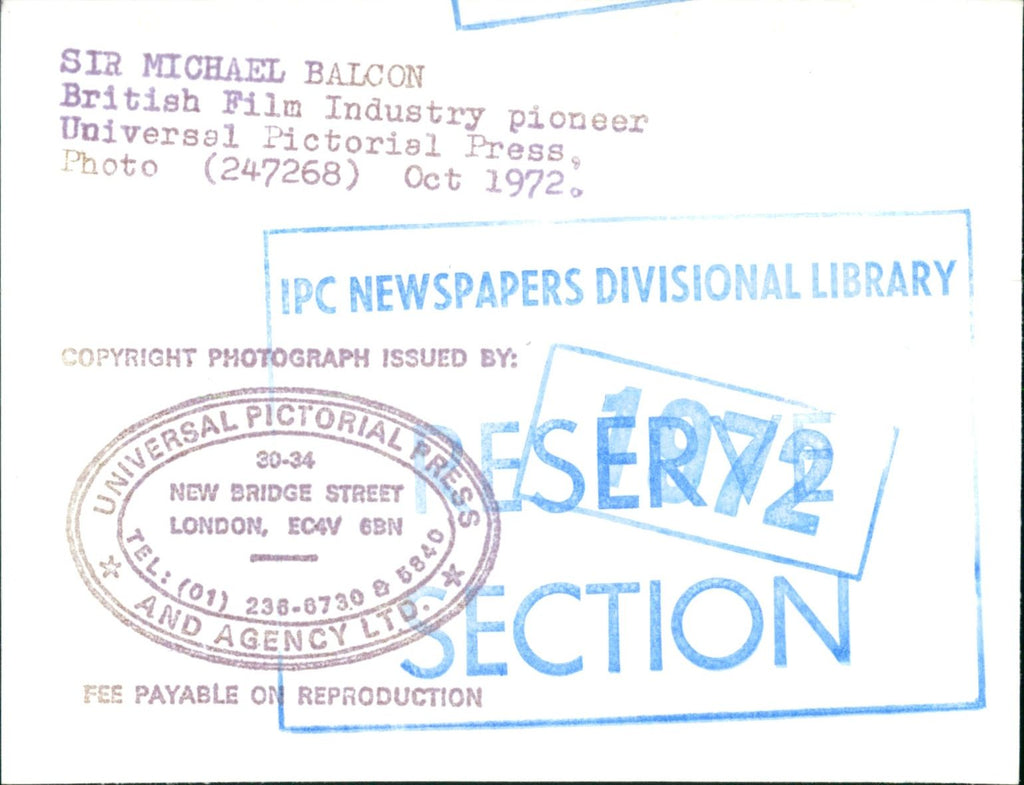 1972 - BALCON MICHAEL SIR BRITISH, LONDON, FILM 1972 - BALCON MICHAEL SIR BRITISH, LONDON, FILM