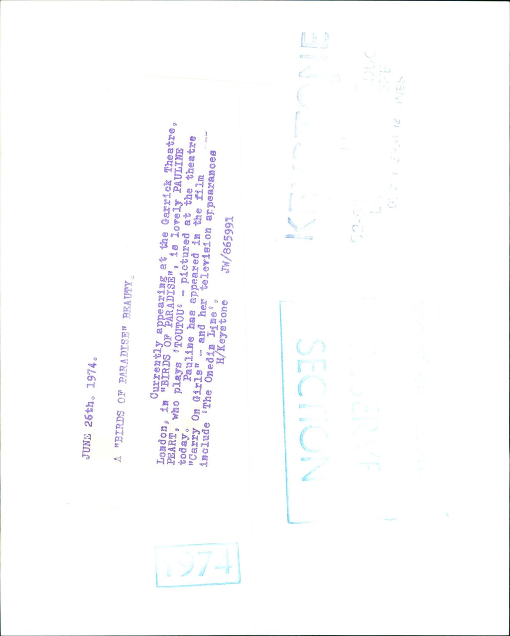 All our press photos are LIMITED ARCHIVE ORIGINALS - they are the actual prints that were used by the newspapers, they are not reprints or digital prints produced by us. All the prints are at least 30 years old and up to 100 years old.