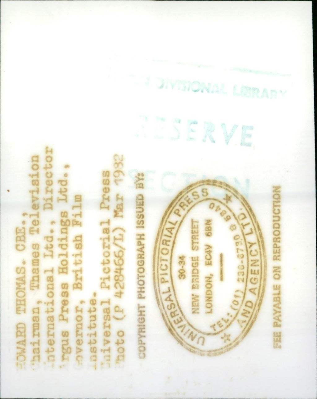 1982 - THOMAS HOWARD CBE HAIRMAN EC4Y 6N 0504, LONDON, BRITISH, FILM - Vintage Photograph