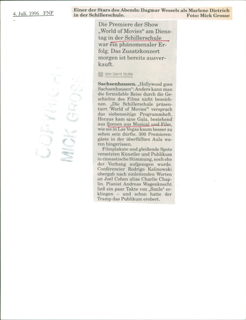 1996 SCHOOLS SCHULER SHEAT ACTING ROTH PREMIERE MARLENE FILM MICK 1996 SCHOOLS SCHULER SHEAT SCHAUSPIELSCH ROTH PREMIERE MARLENE FILM MICK