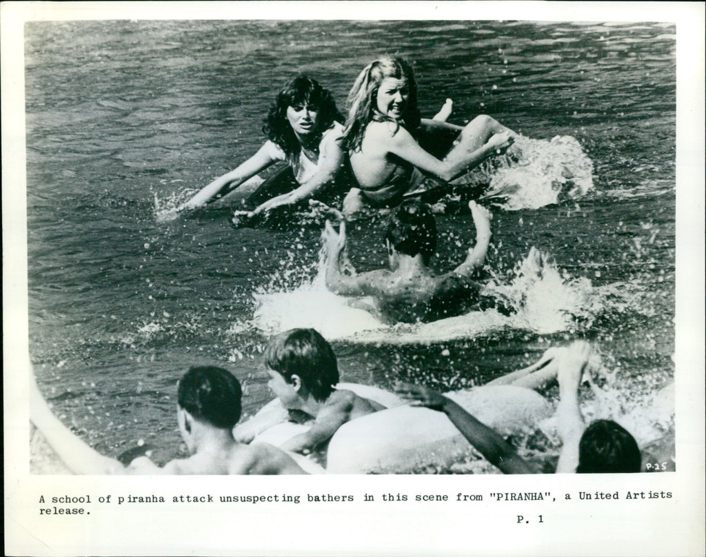 In this scene from the 1979 movie "PIRANHA", a school of the carnivorous fish attack unsuspecting bathers. The film was released by United Artists and became a cult classic. In this scene from the 1979 movie "PIRANHA", a school of the carnivorous fish attack unsuspecting bathers. The film was released by United Artists and became a cult classic.